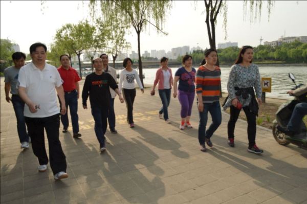 4月28日下午4:00,斜阳浓浓,微风徐徐,在集团公司领导秦广远、付立文等同志的带领下,近40名员工在楼下准时集合,排成整齐的健步走队伍,挥舞着“郑州市建设投资集团”的旗帜,精神抖擞地沿着如意湖畔阔步前行,在运动中体验健康和快乐。