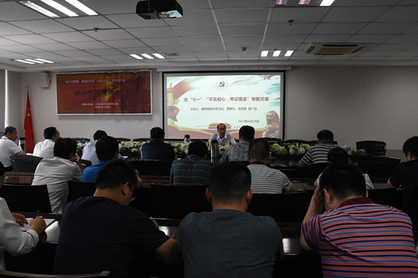 6月29日,在习近平总书记“七一”讲话发表两周年、建党97周年即将到来之际,集团公司举办“迎‘七一’‘不忘初心,牢记使命’专题党课”,党委书记、董事长、总经理秦广远同志结合党的十九大精神和习近平新时代中国特色社会主义思想带领大家重温习总书记“七一”重要讲话,公司领导、各支部书记、全体党员和机关员工参加了活动。